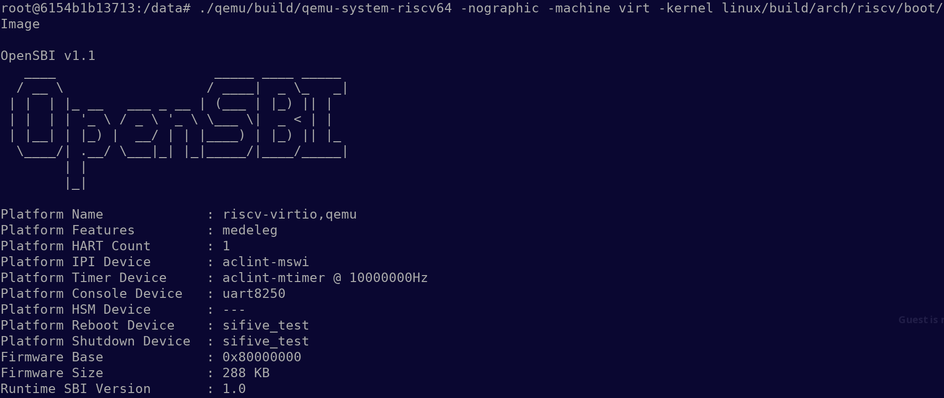 ./qemu/build/qemu-system-riscv64 -nographic -machine virt -kernel linux/build/arch/riscv/boot/Image